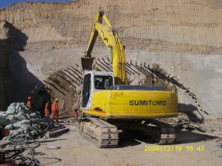 根據(jù)工程地質(zhì)條件及工程設(shè)計情況,本工程采用潛孔錘跟管鉆進法及風(fēng)動力跟管鉆進法進行施工。