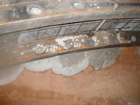 上臺(tái)階至拱頂以上5m為中粗砂層,褐黃色,未膠結(jié),砂巖與砂層交接處有股狀水流出,中下臺(tái)階均為未強(qiáng)風(fēng)化砂巖。剩余長(zhǎng)度為改DK355+494- DK355+517,共23m。